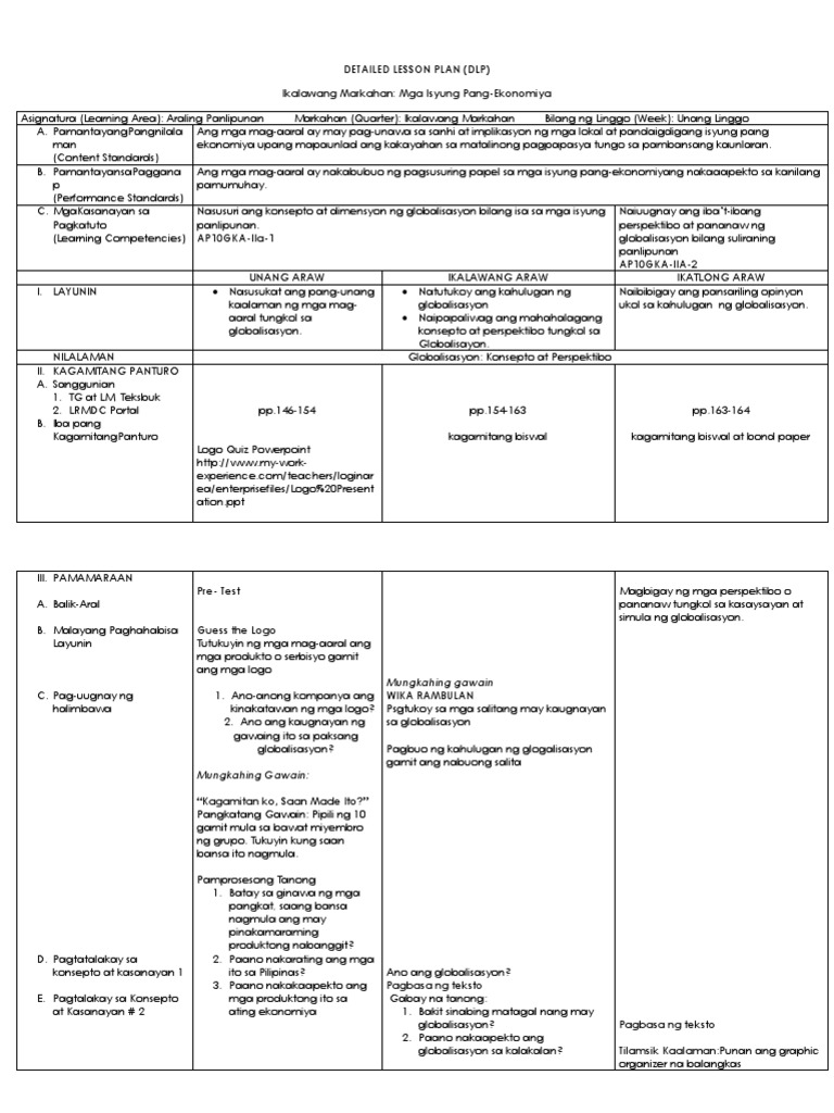 Unaay ang paniniwalang ang globalisasyon ay taal o nakaugat sa bawat isa. Natatalakay ang kahalagahan ng alokasyon ng piangkukunang yaman. Panimula at mga Gabay na Tanong Sa modyul na ito ay susuriin ang mga isyung pang-ekonomiya tulad ng globalisasyon isyu sa paggawa at migrasyon kaakibat ang implikasyon nito sa pamumuhay ng mga Pilipino.