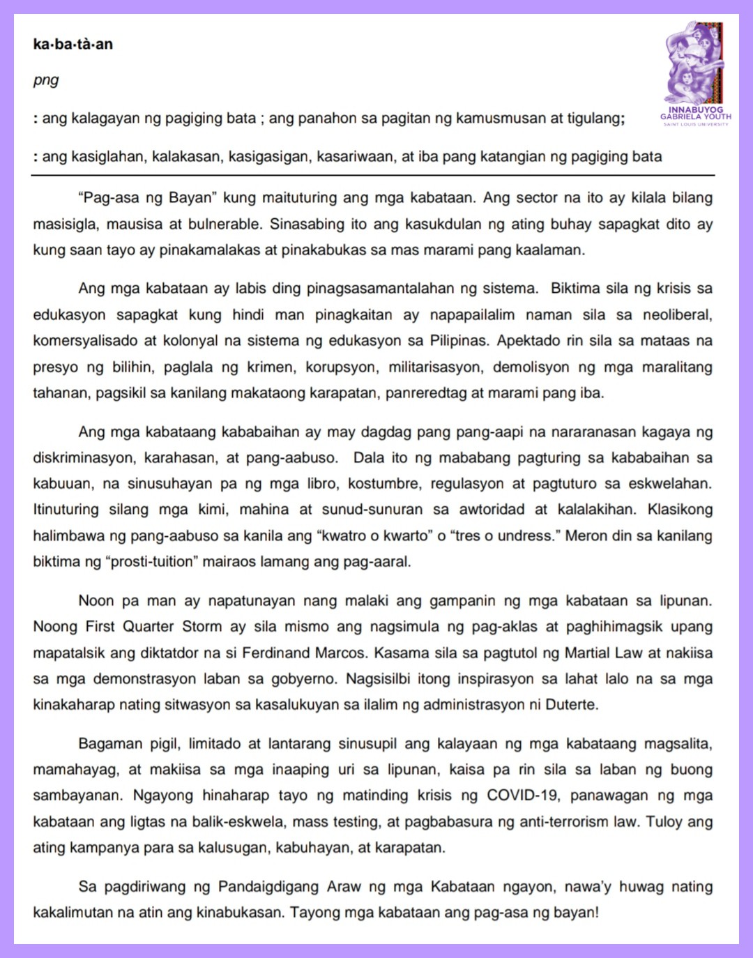 Gabriela Youth Pnu Mariing Kinukundena Ng Mga Pangmag Aaral Na Organisasyon Sa Pamantasang Normal Ng Pilipinas Ang Pagpapatuloy Ng Mga Kaso Ng Pang Aabuso At Karahasan Laban Sa Mga Mag Aaral Sa Loob Ng