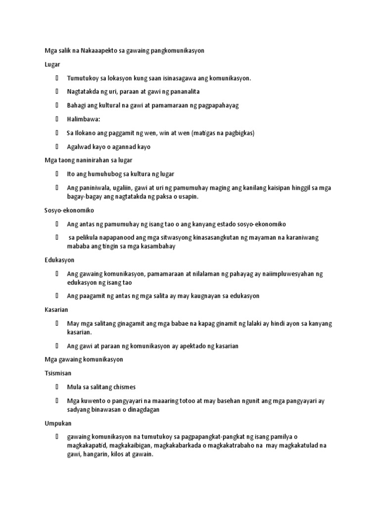 Mga Salik Na Nakaaapekto Sa Gawaing Pangkomunikasyon Pdf