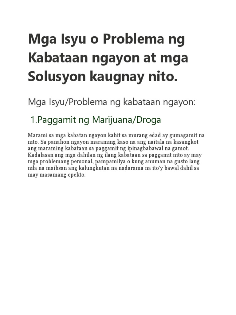 Mga Isyu O Problema Ng Kabataan Ngayon At Mga Solusyon Kaugnay Pdf